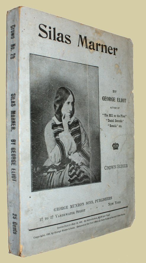 Silas Marner...... New York: George Munro's Sons, (1898). Reprint. "Crown Series No. 29." 8vo., orig. pictorial wrappers, 159, (3)pp.ads. Cheap paper browned as usual and a bit brittle, wrappers have some chips out at extremities but still very good.