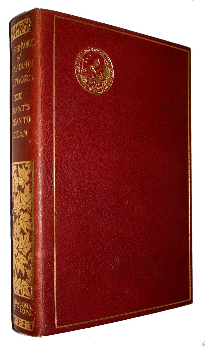 Ocean to Ocean. Sandford Fleming's Expedition Through Canada In 1872 By.....Revised edition.....(Master-Works of Canadian Authors Volume XIII. Introduction and Notes by William L. Grant. ) Toronto: Radisson Society, 1925. Limted edition, 1 of 26 copies. Tall 8vo., full publishers leather, gilt decoration on spine, xxi, 412pp. A fine copy. Scarce.