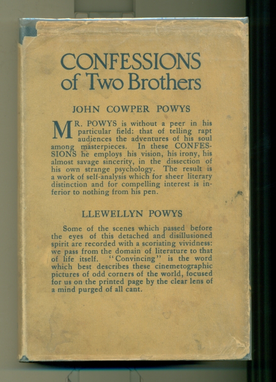 Confessions of Two Brothers. Rochester: The Manas Press, 1916. First edition. Spine a bit darkened o/w fine in the very scarce d/w which is lightly soiled with a couple of small chips.