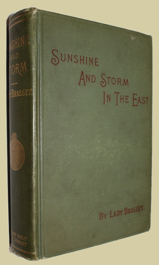 Sunshine and Storm In The East Or Cruises to Cyprus and Constantinople. New York: Henry Holt and Company, 1890. Tall 8vo., orig. pictorial cloth, xx, 448pp. Rubber stamp on front pastedown, some light wear to the spine ends but still a very nice, not quite near fine copy. Lady Brassey's cruise in the Mediterranean; including Tetuan, Sicily, Athens, Greece and the Archipelago; Constantinople; Bosphorus; Black Sea; Turkey; Smyrna; Corfu and vicinity; Italy.