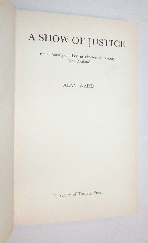 WARD, Alan. A Show Of Justice. racial "amalgamation" in nineteenth century new zealand.