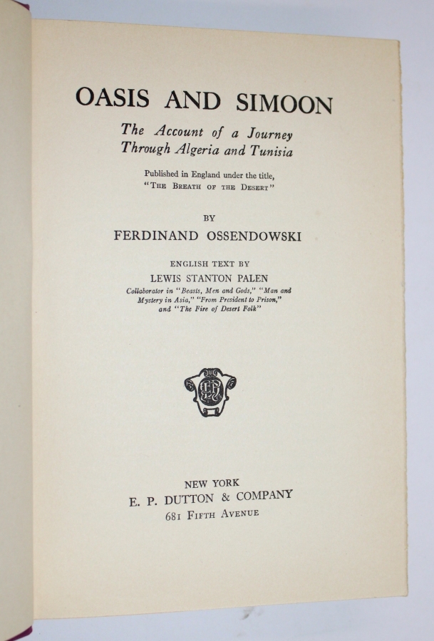 OSSENDOWSKI, Ferdinand. Oasis and Simoon. The Account of a Journey Through Algeria and Tunisia. English Text by Lewis Stanton Palen.