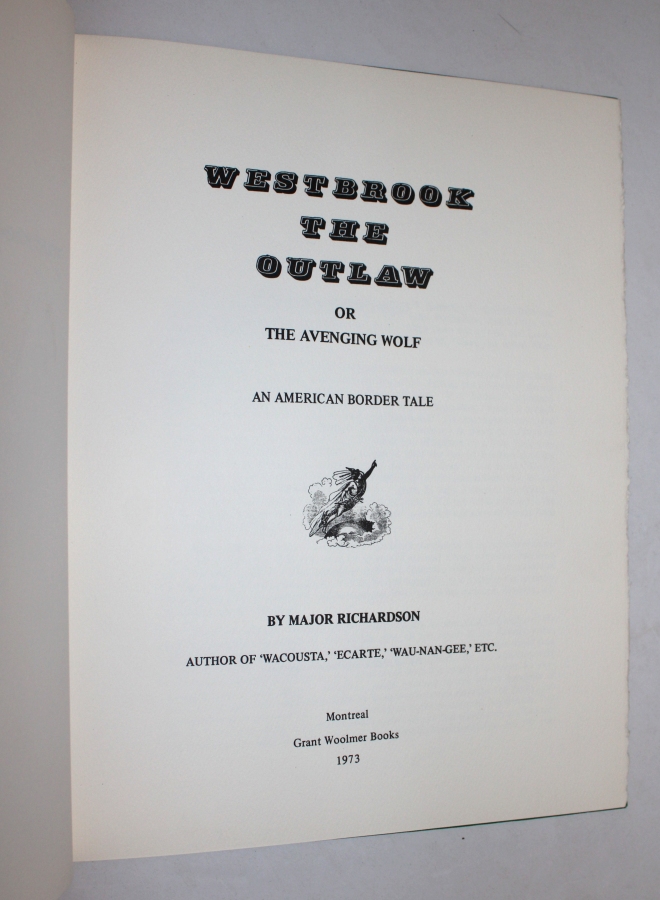 Westbrook The Outlaw or The Avenging Wolf An American Border Tale.