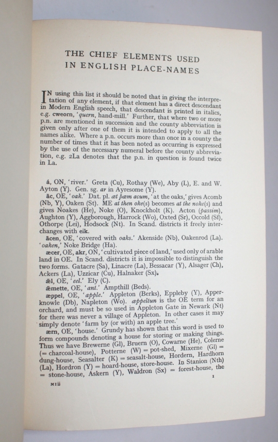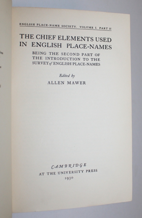 MAWER, Allen. The Chief Elements Used In English Place-Names Being the Second Part of the Introduction to the Survey of English Place Names. Edited By....