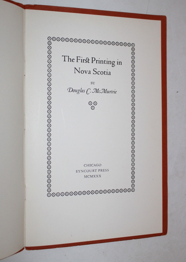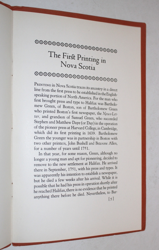 The First Printing in Nova Scotia.