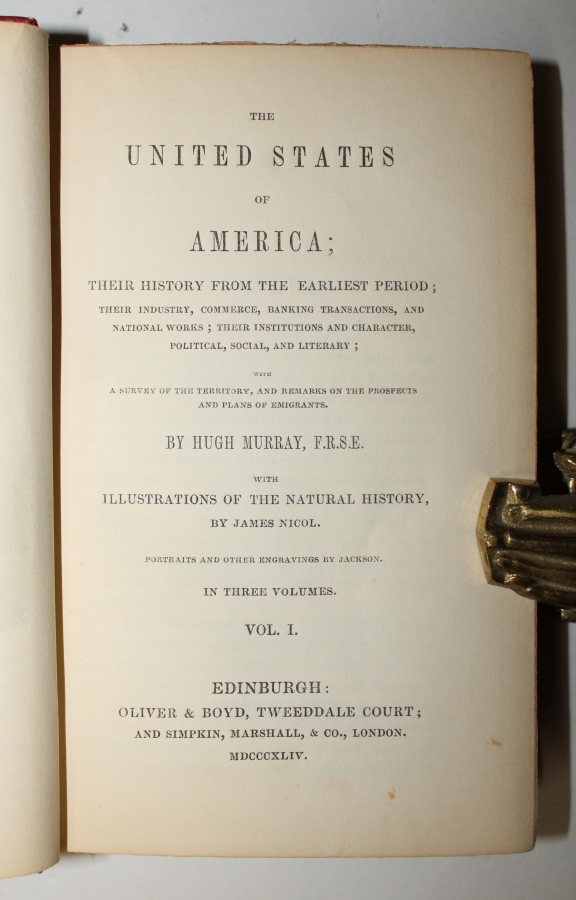 MURRAY, Hugh. The United States of America; Their Earliest History From the Earliest Period.........With A Survey on the Territory, And Remarks On The Prospects and Plans of Emigrants.