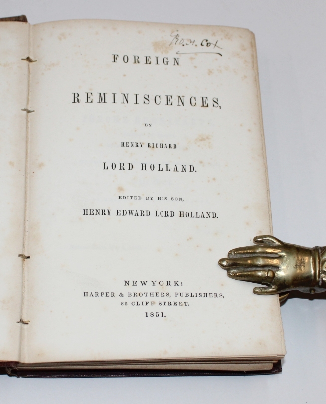 HOLLAND, Lord (Richard Henry). Foreign Reminiscences, By.....Edited by His Son, Henry Edward Lord Holland.