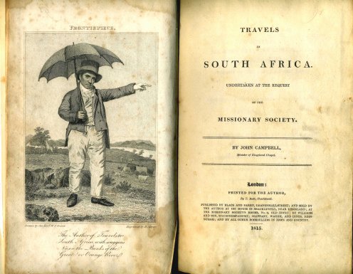 ".....the directors of the London Missionary Society decided to send the author to South Africa to inspect their settlements, and he sailed on June 24, 1812, arriving at Cape Town in October. Being advised not to go far up country during the fiercest heat of the summer, Mr. Campbell filled up his time by paying visits to Stellenbosch, Caledon and Genadendal.....In March he arrived at Bethelsdorp, the main station of the London Society.....he proceeded to Albany, and pushing through Kaffraria, saw a good deal of the resident Boers of the interior.....Near Graaff-Reinert the party met the celebrated Traveller, burchell, and later on they journeyed through the Snewburg and "Bushmen's Country" till they reached Klaar Water, from which place they pushed on for Lattakoo. There is an interesting account of the chief and his people, with some notes on teh Wankentzens, an adjoining tribe who, seven years before had massacred Dr. Cowan and a party of over twenty Europeans.....A visit was paid to Namaqualand, and there are some notes upon that country and Damaraland....." (Mendelssohn). $1750 CAD