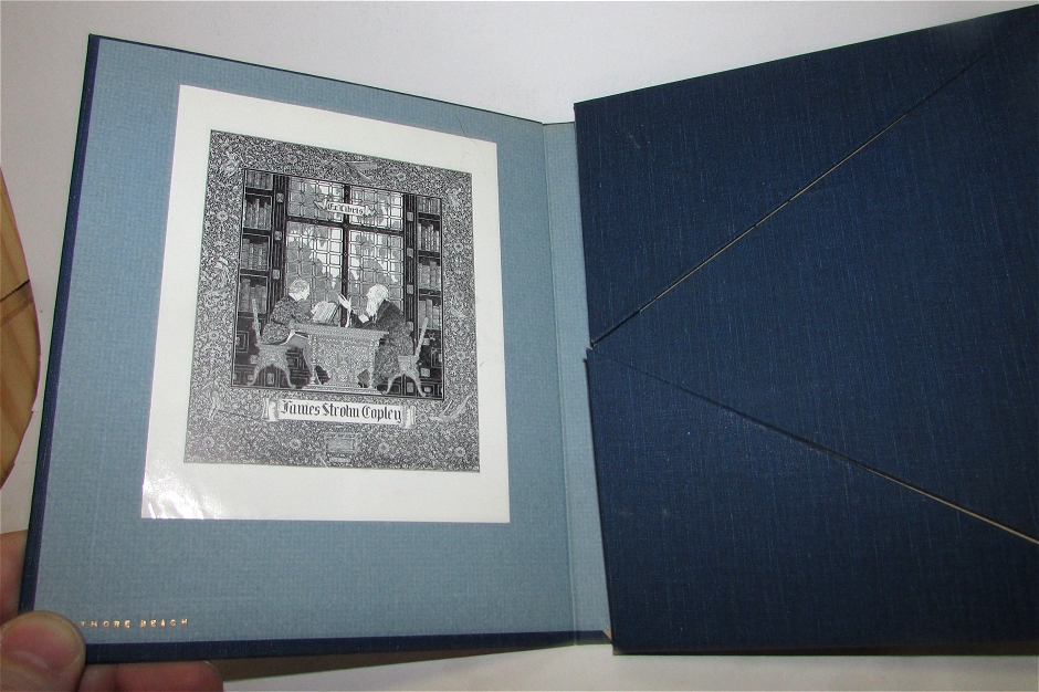A fine copy of this Huxley rarity. In a slipcase (which has a piece of red morocco pasted over the original blue morocco spine. The inner flap of the slipcase has the bookplate of journalist and newspaper publisher, 'James Strohn Copley'. Los Angeles bookseller, Michael Thompson, described this as 'a notorious rarity' adding that 'many were stolen on opening-night.'