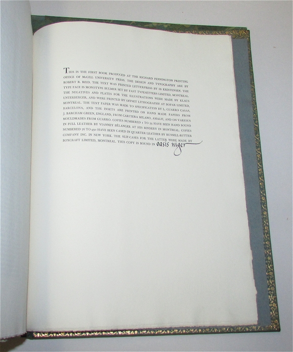 Montreal: The Lawrence Lande Foundation for Canadian Historical Research, 1965. First edition, 1 of 75 copies bound by Belanger and signed by Lande (total edition of 950 copies).