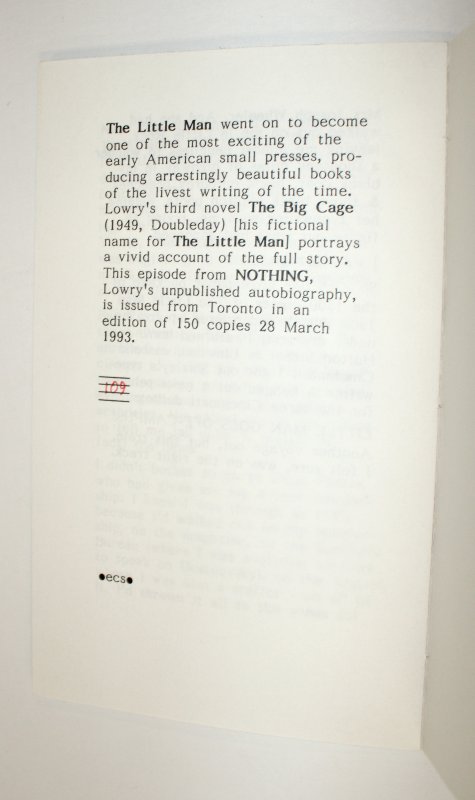 (Toronto: Letters Bookshop, 1993). 1 of 150 copies.