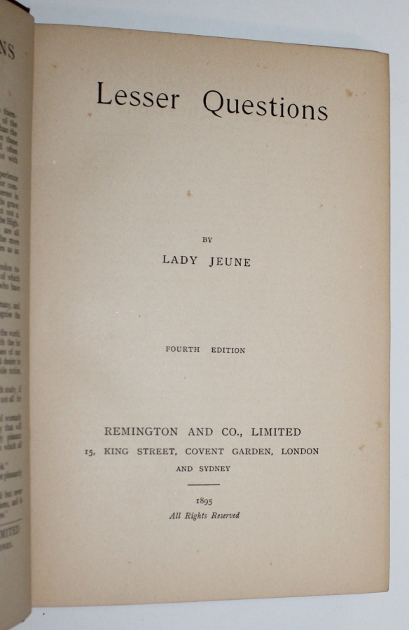 JEUNE, Lady. (Susan Mary Elizabeth). Lesser Questions.