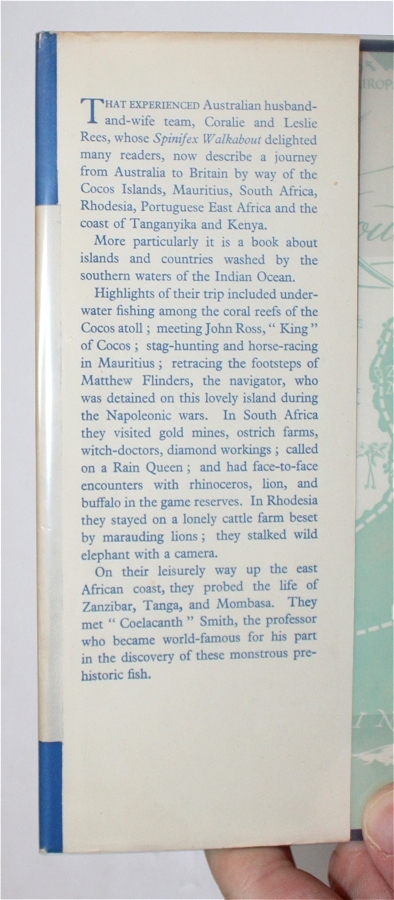 A journey from Australia to Britain by way of the Cocos Islands, Mauritius, South Africa, Rhodesia, Portugues eEast Africa and the coast of Tanganyika and Kenya. A fascinating account including an encounter with witch doctors, wild animals, gold mines, ostrich farms, etc. $50 CAD
