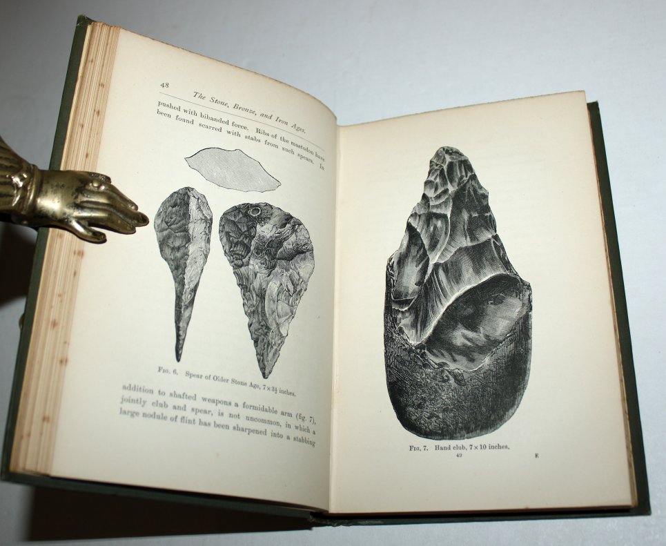 This work traces the story of man from early post-tertiary times, through the drift and cave periods in Europe, and the neolithic, bronze, and iron ages. There are special chapters on lake-dwellers, fossil man, myths, pottery, sculpture, and art, and one on the mound builders of the Ohio valley.' (Science: 15, July 1892, p.39) $250