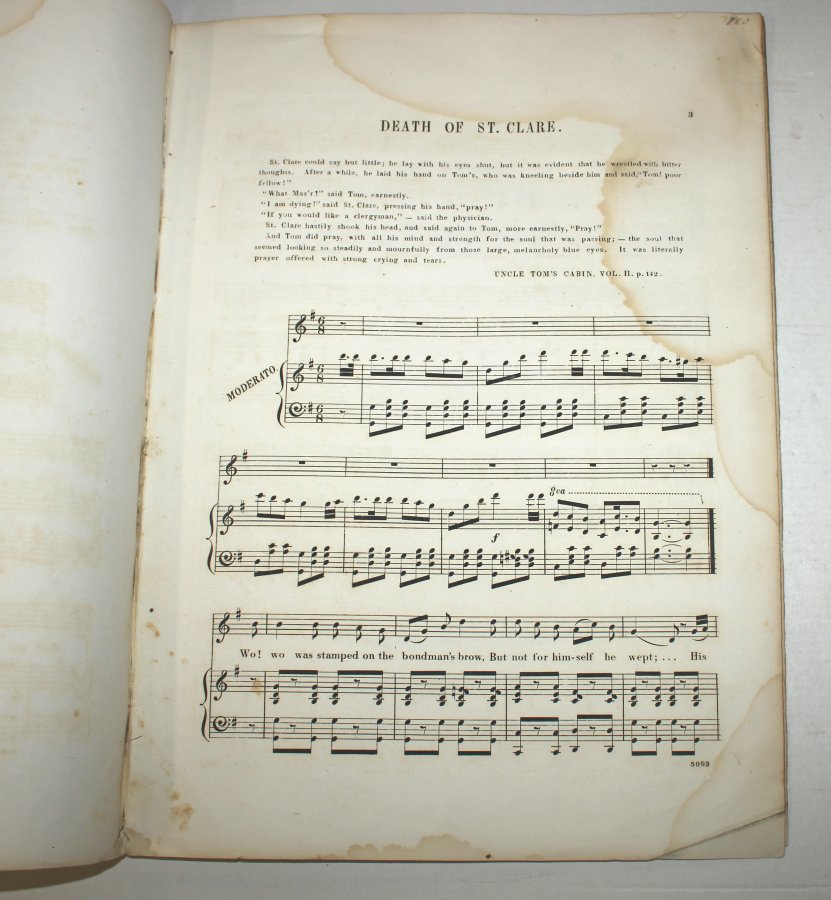COLLIER, M.A. The Death of St. Clare (Little Eva’s Father). Founded upon a scene in “Uncle Tom’s Cabin”. The poetry by M.A. Collier, adapted to a favorite Melody..