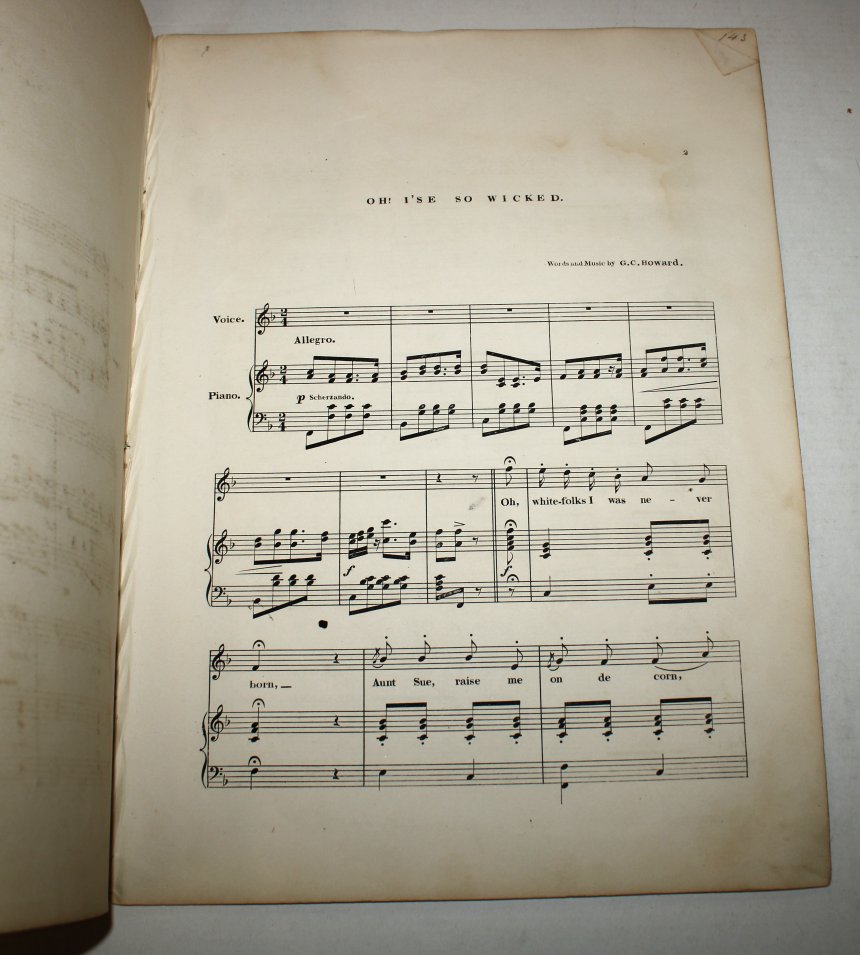 COOK, Eliza. Oh! I’se So Wicked! As sung by Mrs. G.C. Howard in her original character of “Topsy” in Uncle Tom’s Cabin.