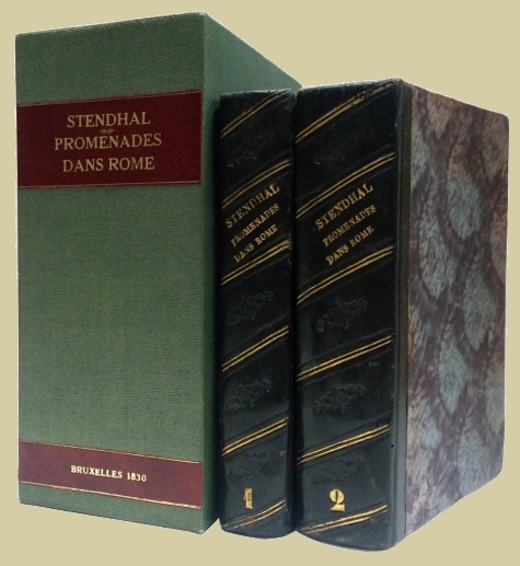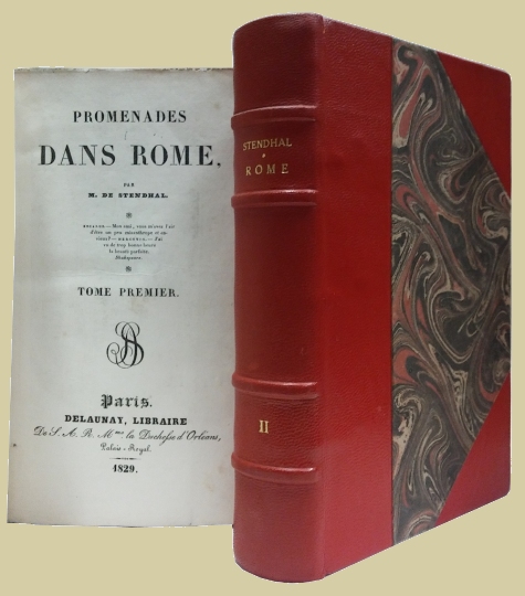 I have the Charterhouse in my library in the first edition in English – which was published very late (New York 1895, three volumes) (writer’s take note). It is forty-three years after Stendhal’s death that the English-speaking world begins to catch up; it can happen to you too. Take heart!) – and in several other editions and subsequent translations. I also have it in a very early French edition – the second, I think. The first is a very expensive book, as it should be. I never expected to ever see – or at least at any price I could pay – any early French editions of Promenades dans Rome (the French title of A Roman Journal) until several years ago, when I found the first Belgian edition (Brussels 1830, two volumes) in an American dealer’s catalogue at what I considered the ludicrously low price of $250. I ordered and got it; I was elated. So, I thought, at least I will own an early edition, if not the true first. But a couple of years ago the true first edition (Paris 1829, two volumes) appeared in a small book auction in Toronto. I knew no one in Toronto would look at that book the way I did and I determined that whatever price it realized, I would buy it, even if it reached its market value, which would be around four or five thousand dollars, I was pretty sure that it wouldn’t approach that price in Toronto. Furthermore, I knew that my only probable competition in the Toronto trade would be my most despised colleague, a man I haven’t spoken to in over ten years, since he sued me for libel (I consider being sued by this man as one of the high points of my career).