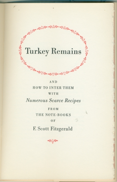 FITZGERALD, F. Scott. Turkey Remains And How To Inter Them With Numerous Scarce Recipes from The Note-Books of...