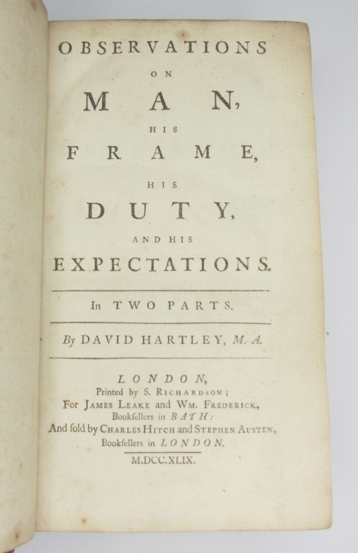 HARTLEY, David. Observations On Man, His Frame, His Duty, and His Expectations. In Two Parts.