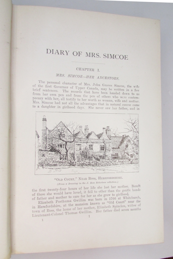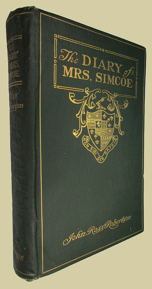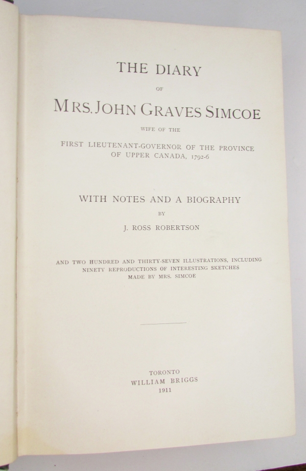 SIMCOE, Mrs. The Diary of Mrs. John Graves Simcoe Wife of the First Lieutenant-Governor of the Province of Upper Canada, 1792-6. With Notes and a Biography by John Ross Robertson.