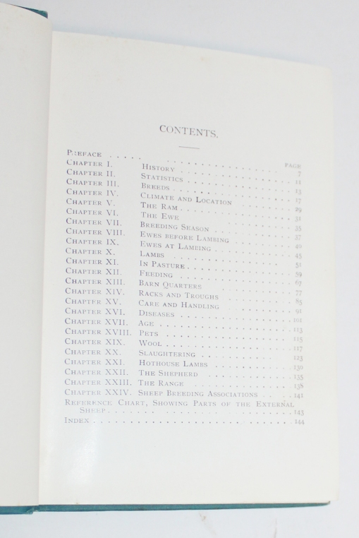 A pretty little book containing a large amount of useful knowledge regarding the keeping of sheep, their feeding and their breeding, published as part of the “Biggle Farm Library”.
