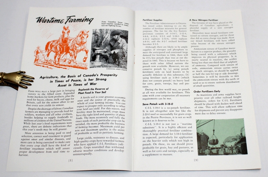 Different kinds of fertilizer are discussed, as is wartime farming: “Agriculture, the Basis of Canada's Prosperity in Times of Peace, is her Strong Asset in Times of War”.