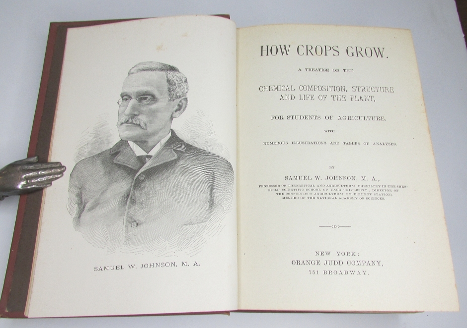 JOHNSON, Samuel W. How Crops Grow. A Treatise on the Chemical Composition, Structure and Life of the Plant, For Students of Agriculture. With Numerous Illustrations and Tables of Analyses.