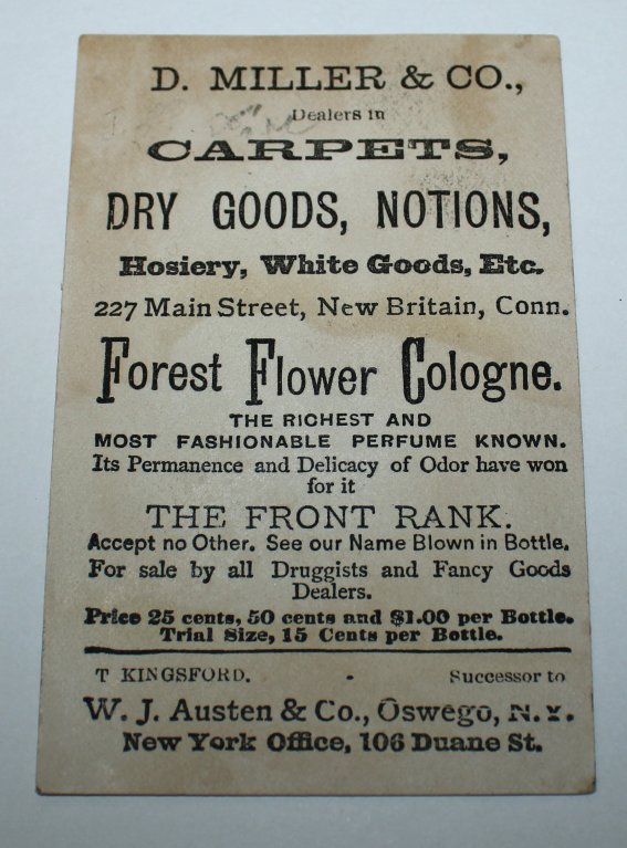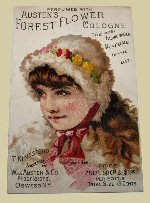 TRADE CARD. Perfumed with Austen's Forest Flower Cologne, the Most Fashionable Perfume of the Day.