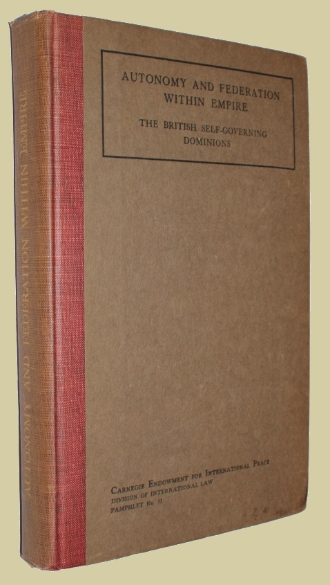 Autonomy And Federation Within Empire. Washington: Published by the Endowment, 1921. "Carnegie Endowment For International Peace ....Pamphlet No.33." 8vo., orig. cloth backed boards, xvi, 352pp. Spine slightly faded o/w near fine.