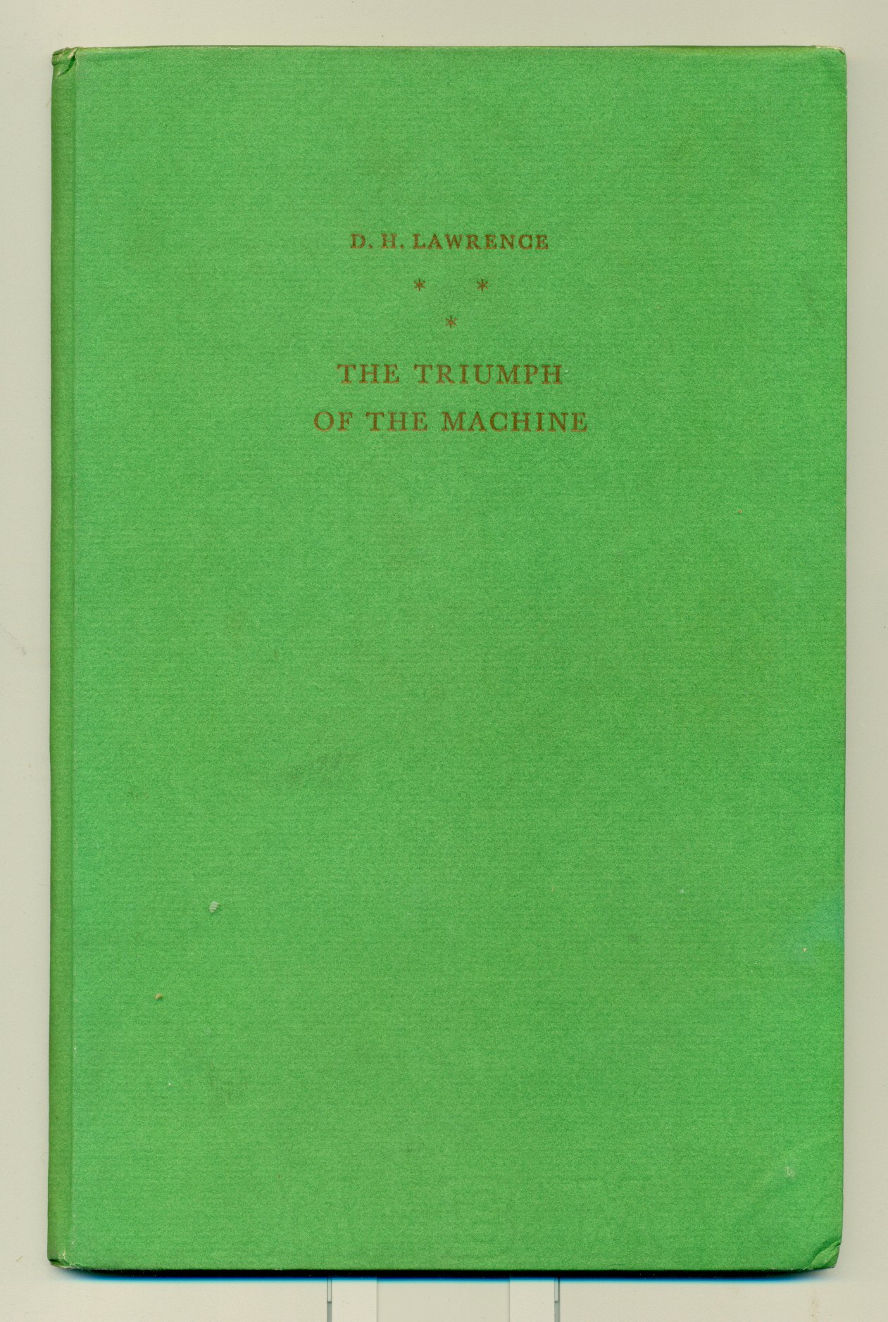The Triumph of the Machine. Drawings by Althea Willoughby. London: Faber & Faber, 1930. First edition. 1 of 400 copies, large paper edition. No. 28 of the Ariel Poems. Tall 8vo., orig. green paper boards lettered in gilt, (16)pp. A fine copy.