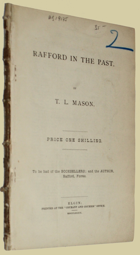Rafford In The past. Elgin: Printed at thh "Courant and Courier" Office, 1889. 8vo., disbound, 56pp. Disbound.