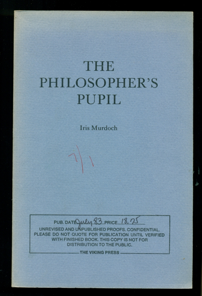 The Philosopher's Pupil. New York: Viking, (1983). Uncorrected proof of the first U.S. edition. "7/1" in red ink on upper wrapper (probably indicating the publication date) o/w fine.