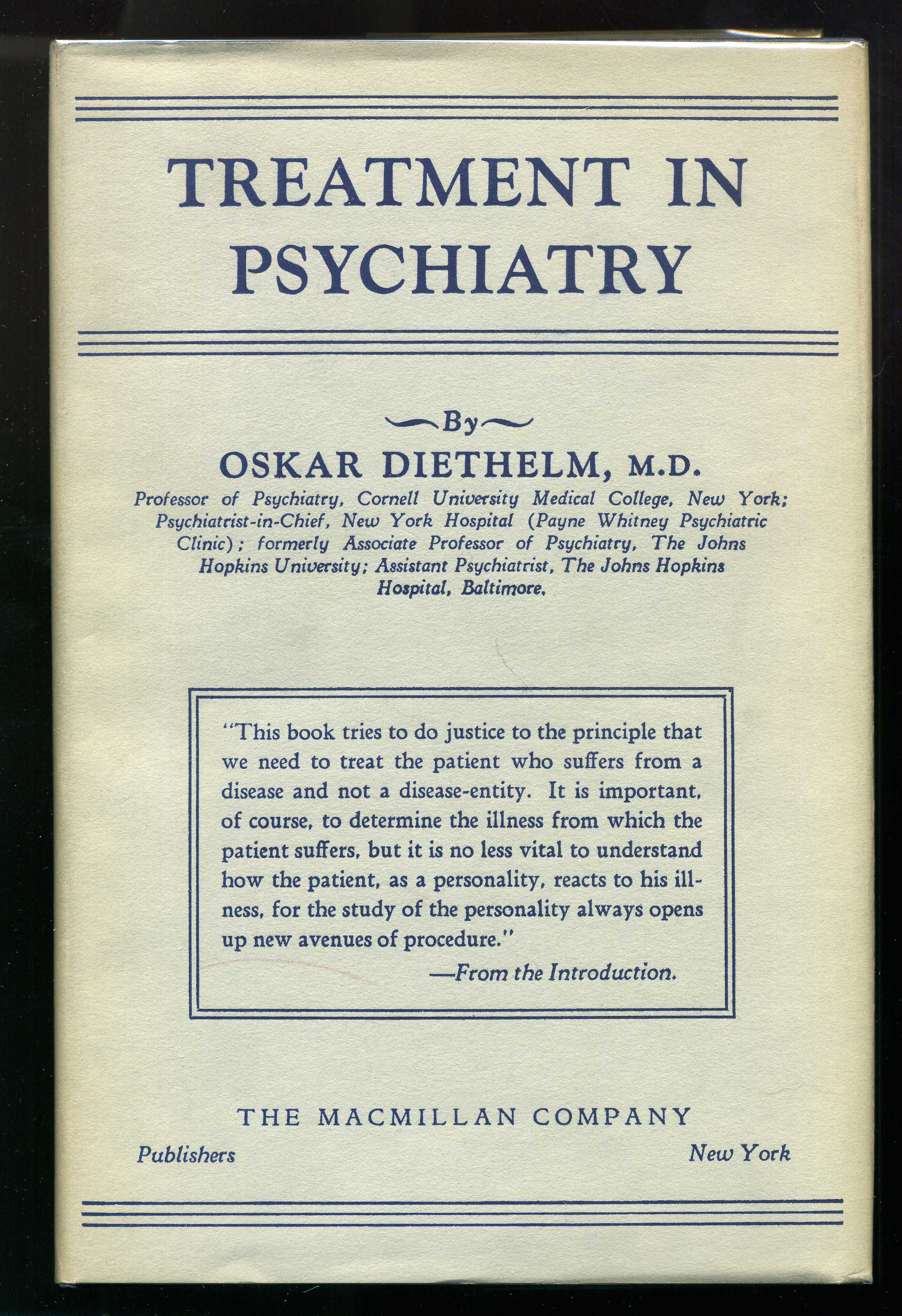 Treatment In Psychiatry. New York: Macmillan, 1936. First edition. With a letter from the publisher to Dr. C. B. Farrar laid in. Cloth, (xvi), 476pp. Fine in d/w.