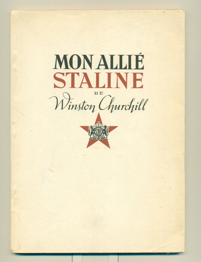 Mon Allie Staline. NP: No publisher, nd. (194-?) First French edition of "My Ally." 8vo., orig. cream wrappers, 111pp. With illustrations. Spine a bit discoloured o/w a nice copy. "Excerpts from speeches about Stalin, with cartoons."