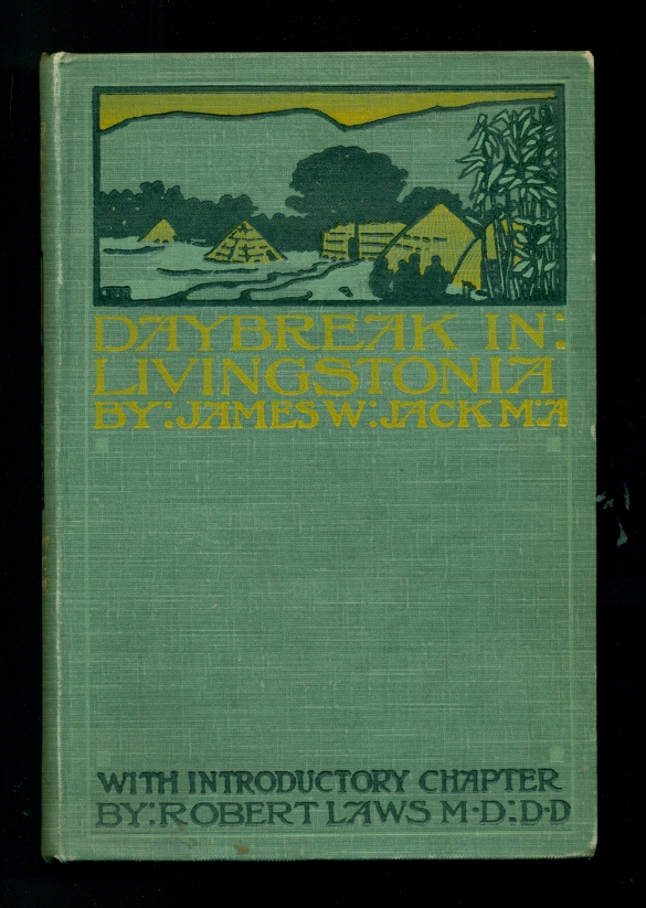 Daybreak In Livingstonia. The Story of The Livingstonia Mission British Central Africa. Revised, With an Introduction by Robert Laws. New York: Fleming H. Revell, nd. (preface dated 1900). Revised edition. 8vo., orig. green pictorial cloth, 371pp. Small red stain on rear cover but still near fine.