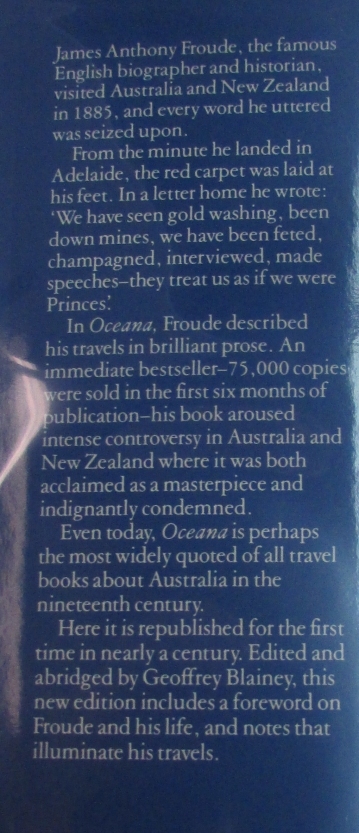(FROUDE, J.A.) BLAINEY, Geoffrey. (editor). Oceana. Travellers' Tales of Early Australia & New Zealand...the tempestuous voyage of J.A. Foude, 1884 & 1885.