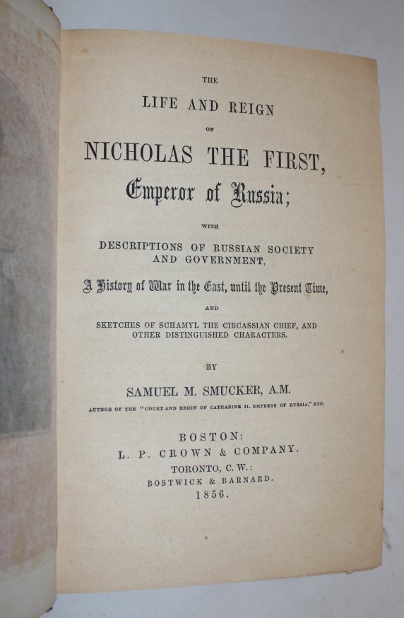 SMUCKER, Samuel M. The Life and Reign of Nicholas The First, Emperor of Russia; With Descriptions of Russian Society and Government, A History of the War in the East, until the Present Time, and Sketches of Schamyl the Circassian Chief, and Other Distinguished Characters.
