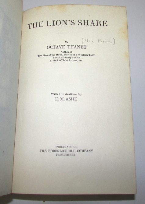 (FRENCH, Alice). The Lion's Share By Octave Thanet. (pseud).