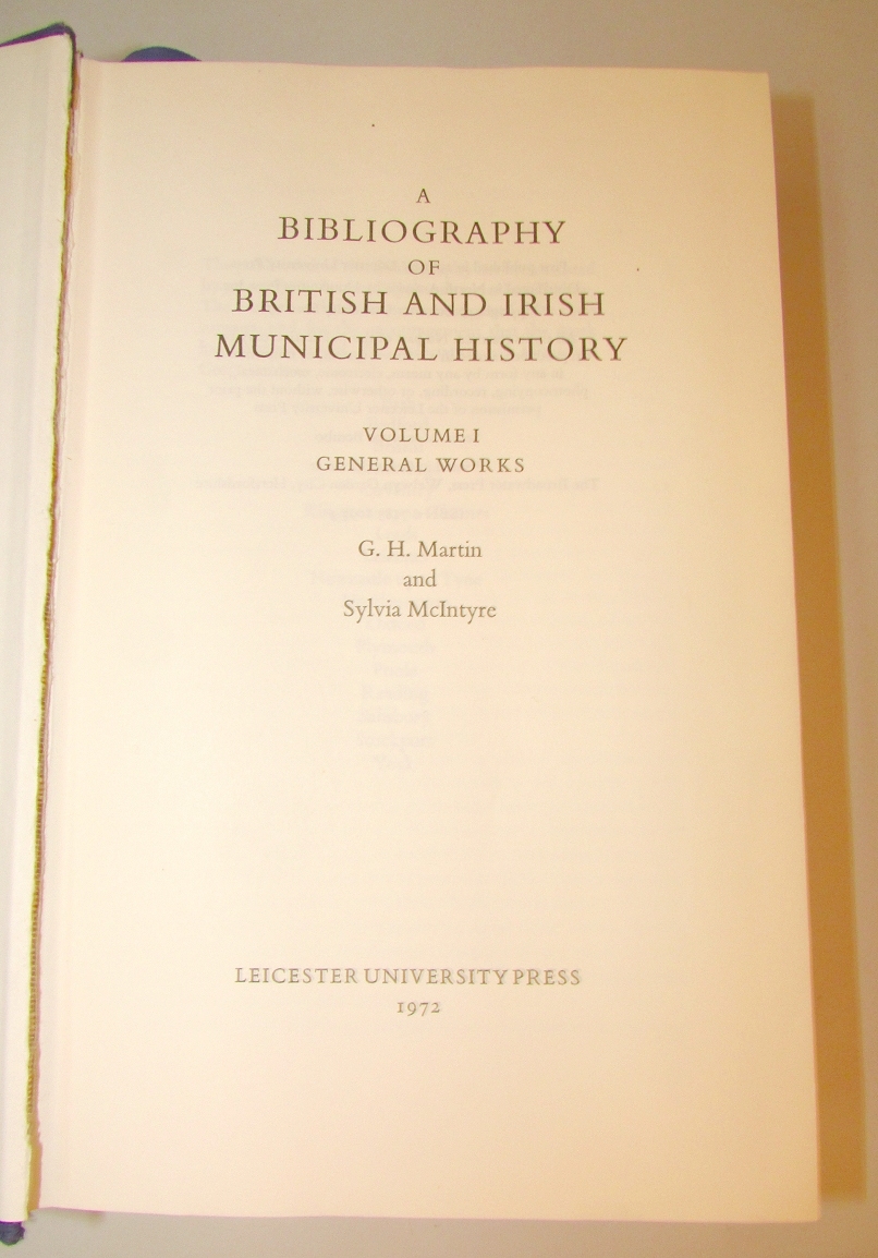 A Bibliography of British and Irish Municipal History. Volume I. General Works.
