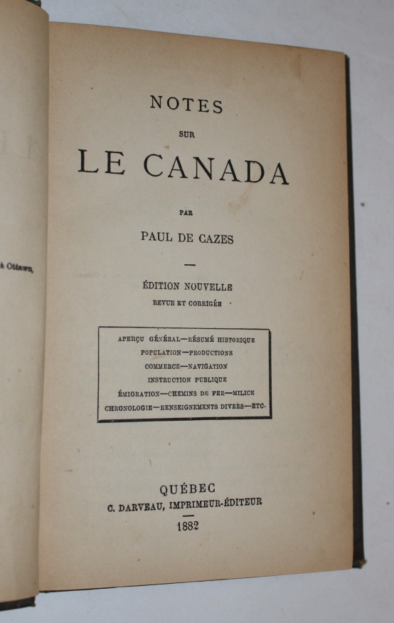 Quebec: C, Darveau, 1882. Nouvelle edition.
