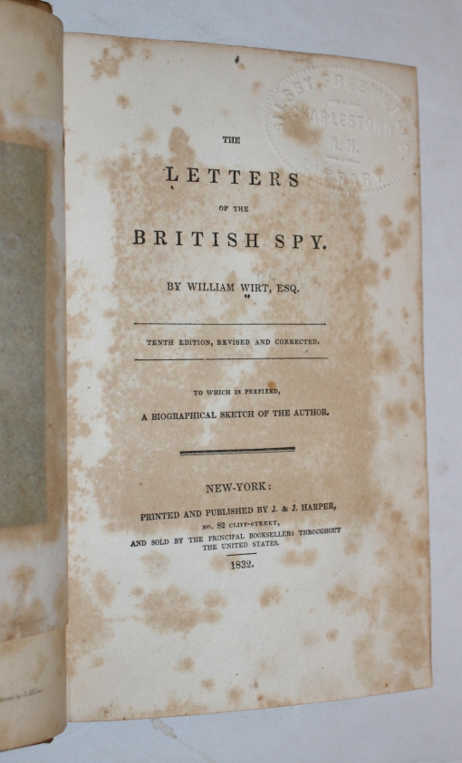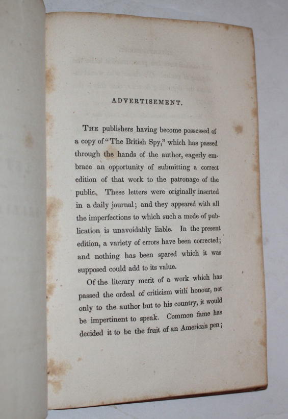 WIRT, William. The Letters of the British Spy. To Which is Prefixed a Biographical Sketch of the Author.