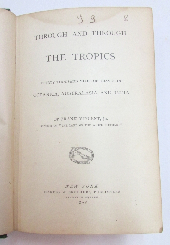 VINCENT, Frank. Through and Through The Tropics Thirty Thousand Miles of Travel In Oceania, Australasia and India.