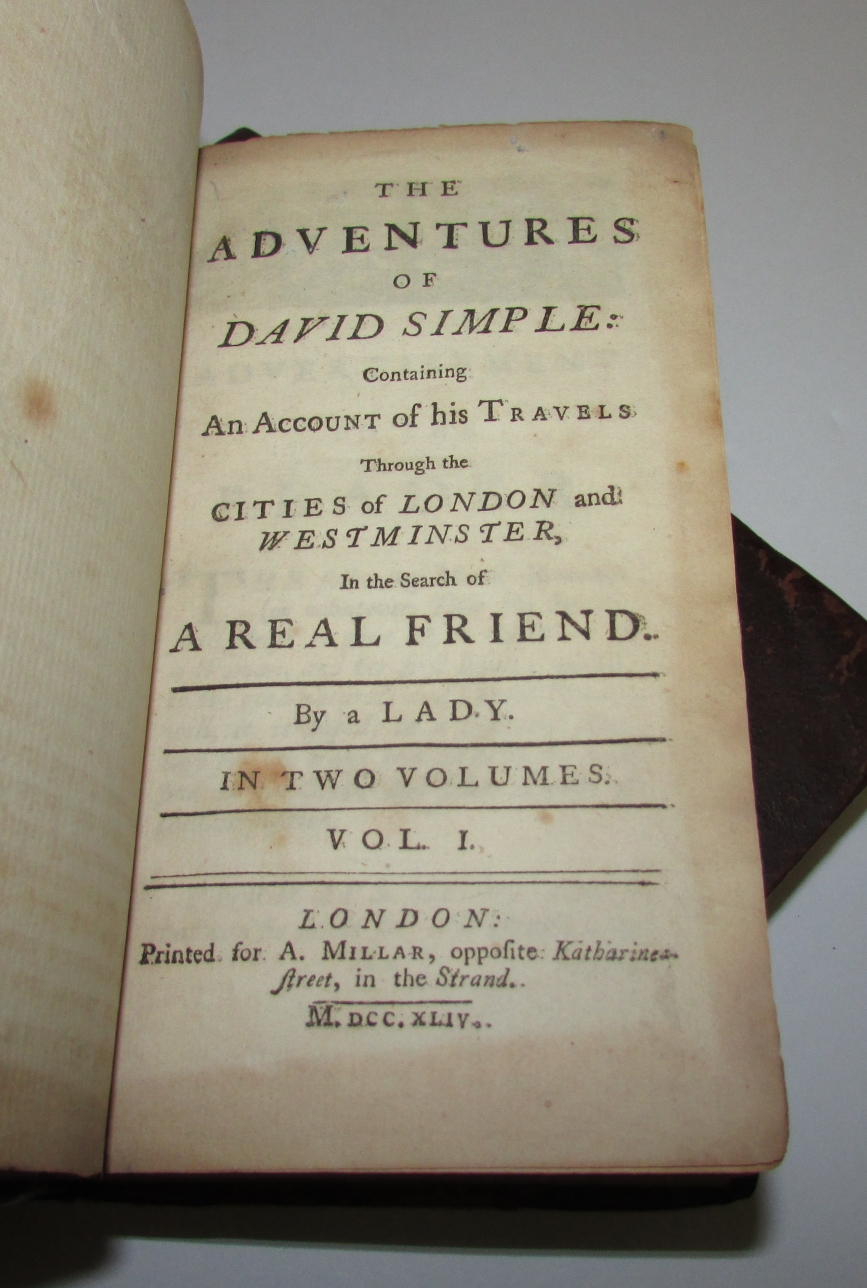 (FIELDING, Sarah). The Adventures of David Simple: Containing an Account of His Travels Through the Cities of London Westminster, in Search of a Real Friend. By A Lady.....