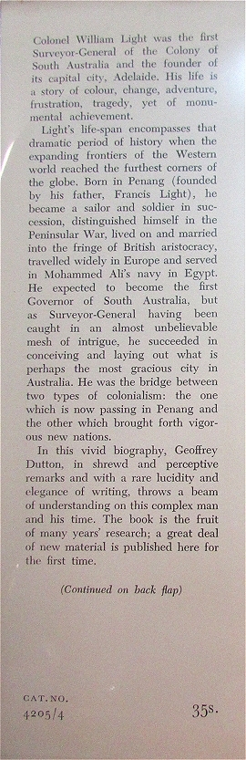 DUTTON, Geoffrey. Founder of a City. The Life of Colonel William Light First Surveyor-General of the Colony of South Australia: Founder of Adelaide 1786-1839.