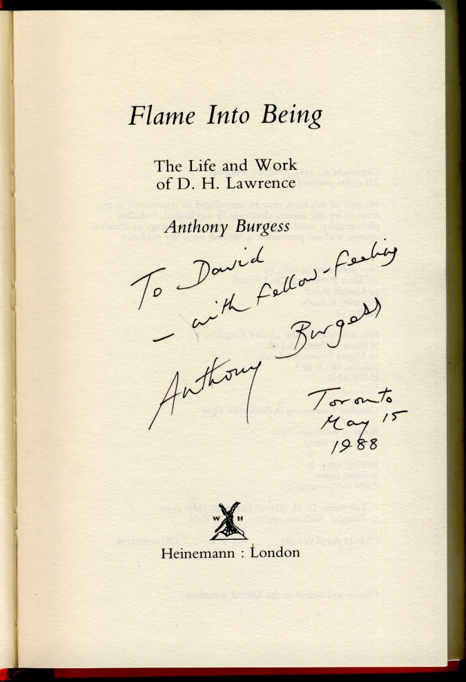London: Heinemann, (1985). First Canadian edition, with Stoddart on the spine and the d/w. With a signed inscription from Burgess dated "1988."