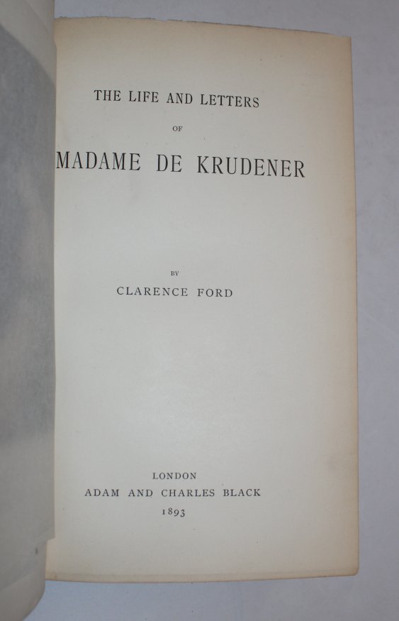 FORD, Clarence. Life and Letters of Madame De Krudener.