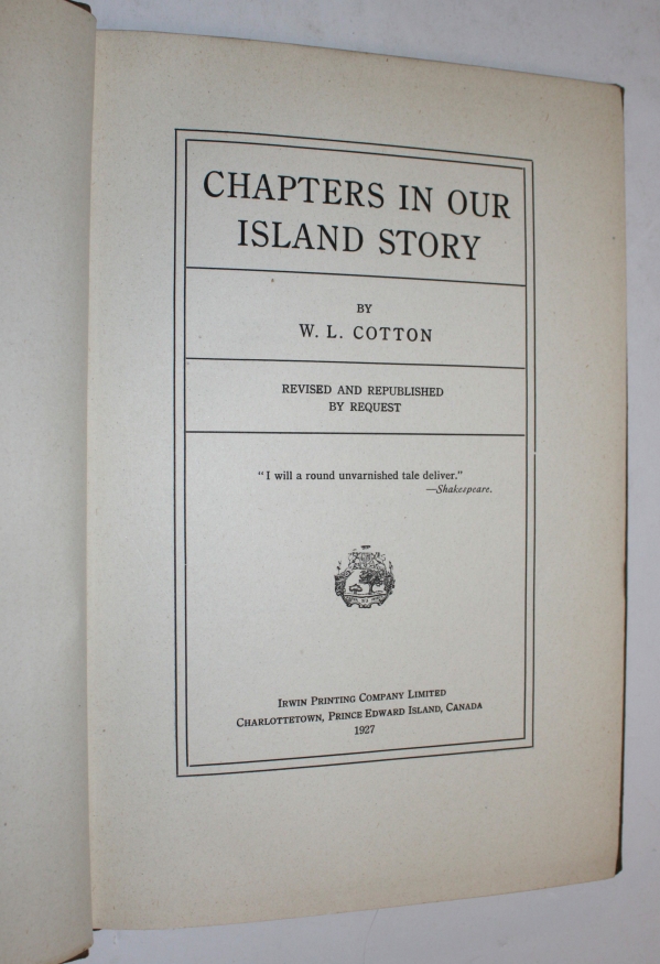 Charlottetown: Irwin Printing, 1927. Revised edition.
