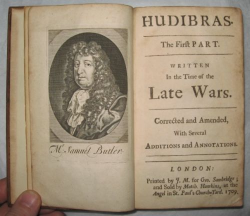 BUTLER, Samuel. Hudibras. The First Part. Written In The Time of the Late Wars. Corrected and Amended, With Several Additoins and Annotations. [Bound with] Hudibras The Second Part By the Author of The First. Corrected and Amended With Several Additions And Annotations. [Bound with] Hudibras. The Third and Last Part. Written by the Author Of The First and Second Parts.