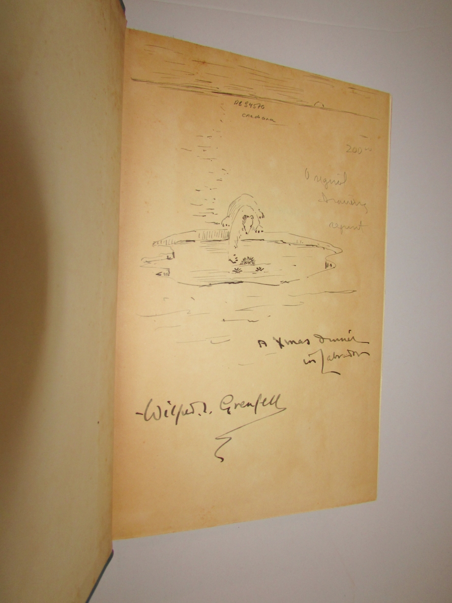 Boston: Houghton Mifflin, ((1932). With an original sketch by Grenfell on the front free e/paper, a polar bear bending over a hold in the ice, signed at the bottom,
