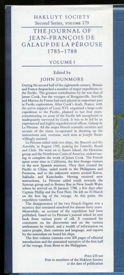 DE LA PEROUSE, Jean-Francois de Galaup. The Journal of Jean-Francois de Galaup de la Perouse. Translated and edited by John Dunmore.